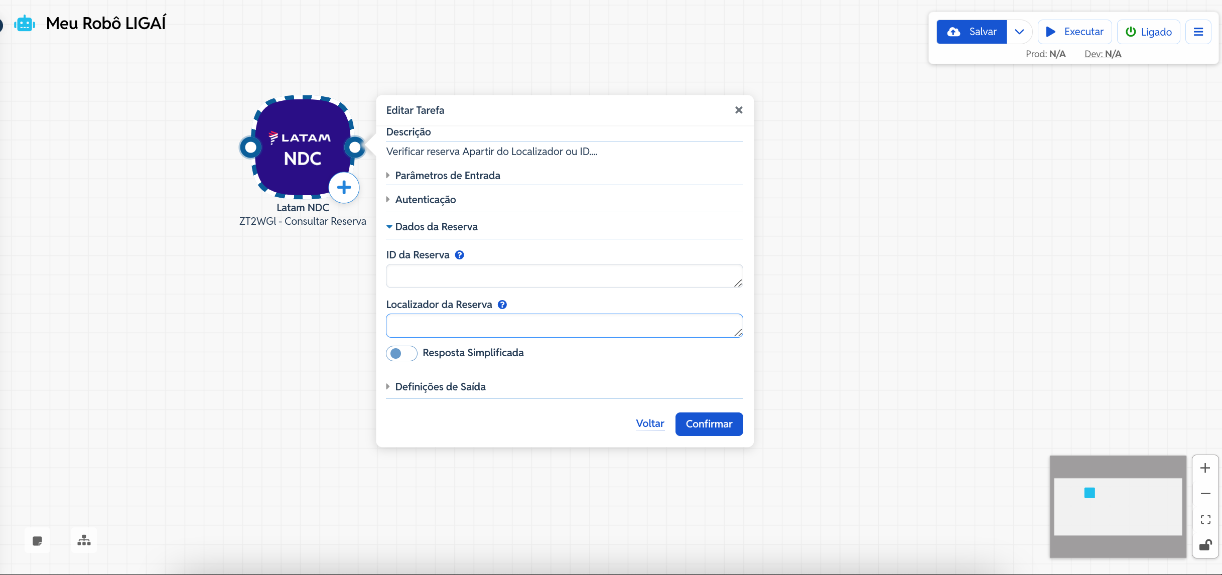 Este artigo descreve como configurar e utilizar a ação Consultar Reserva do conector LATAM NDC no Ligaí..