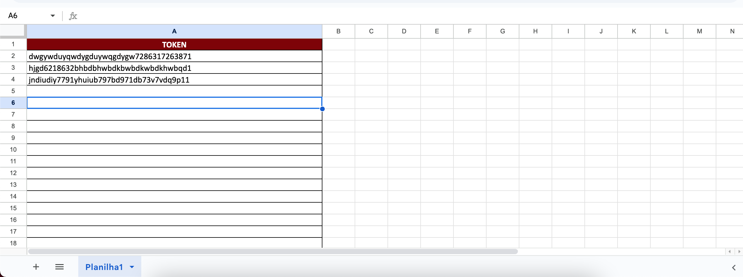 Crie um arquivo Excel (.xlsx) contendo os tokens que serão utilizados pelo robô.